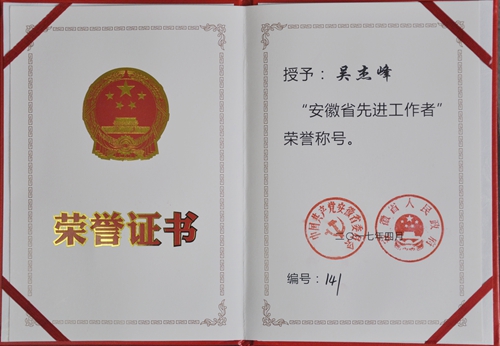 安徽省委书记李锦斌为吴杰峰研究员颁奖