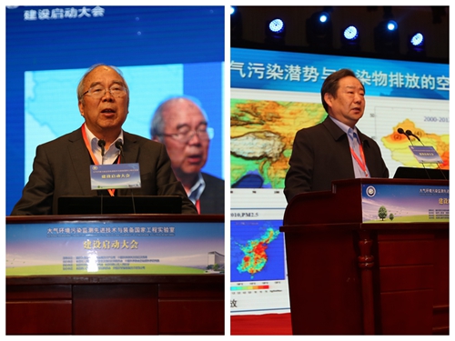 大会主旨报告(左:郝吉明院士 右:张远航院士)
