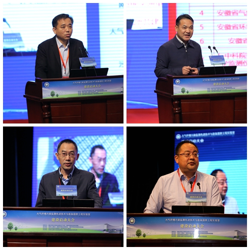 建设启动仪式上,中科院合肥研究院安徽光机所首席科学家、工程实验室主任刘文清院士汇报了国家工程实验室规划报告,分别从实验室建设背景、目标与定位、建设内容与方案、组织框架与运行机制等方面,为参会领导与嘉宾们做了有关介绍。合肥市市长凌云、环保部监测司副司长吴季友、中科院科发局局长严庆和安徽省常务副省长邓向阳分别致辞,热烈祝贺大气环境污染监测先进技术与装备国家工程实验室正式启动建设,殷切期望实验室团队响应党的十九大“五大发展理念”号召,开拓创新,不断取得重大科研进展与成果,“为建设美丽中国贡献安徽力量”。