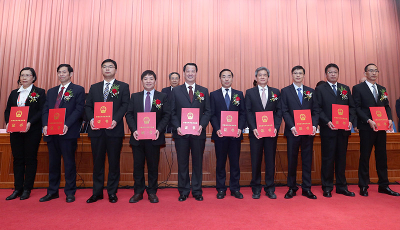 李锦斌白春礼为重大科技成就奖获得者颁奖