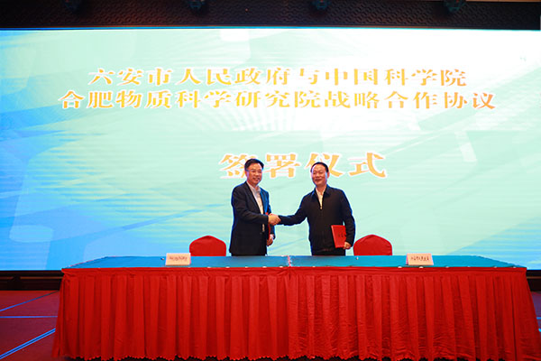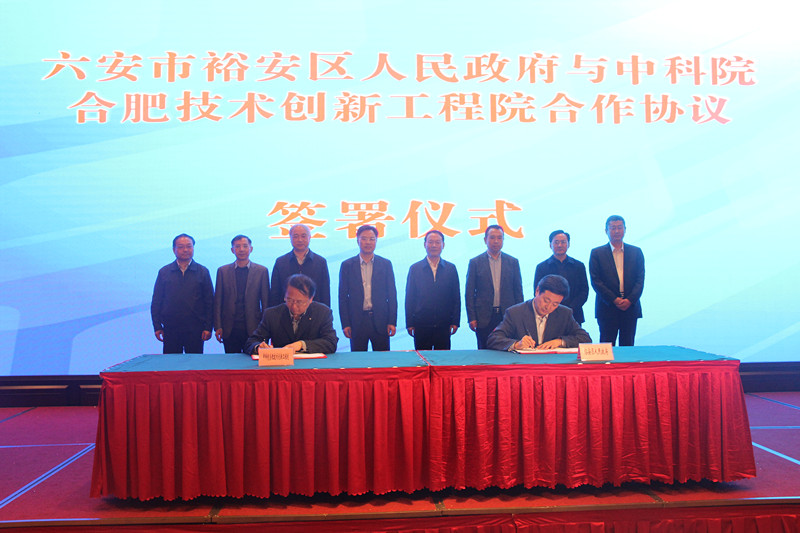 匡光力与叶露中分别代表双方签署《六安市人民政府与中科院合肥物质科学研究院战略合作协议》;合肥研究院应用所所长田兴友与六安市金安区区长霍绍斌签署了《金安区人民政府与安徽工业技术创新研究院共建“安徽工业技术创新研究院(六安)”合作协议》;中科院合肥技术创新工程院院长李季与裕安区区长王仲儒签署了《裕安区人民政府与中科院合肥技术创新工程院合作协议》。