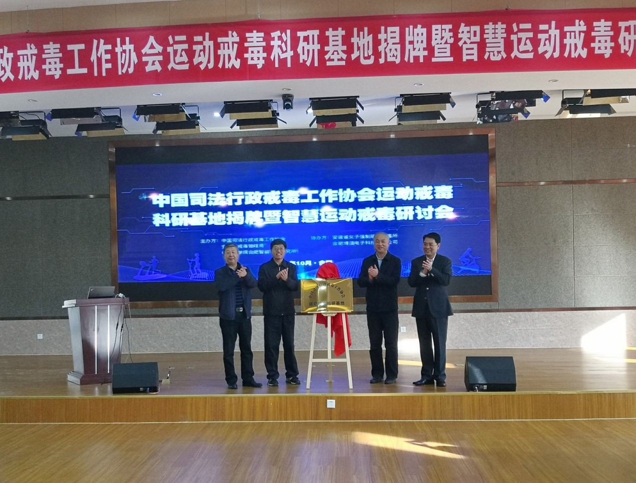 中国司法行政戒毒工作协会副会长刘卫民、中国科学院合肥物质科学研究院副院长江海河、安徽省戒毒管理局局长程志先、智能所运动健康技术首席科学家孙怡宁等共同为运动戒毒科研基地揭牌。智能所副所长马祖长主持仪式。