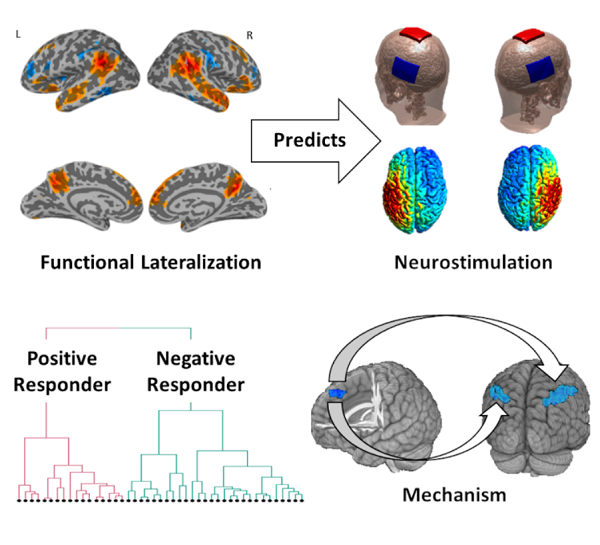 图2. 刺激敏感性可以根据功能偏侧化推断,顶叶和内侧额叶的耦合是关键机制