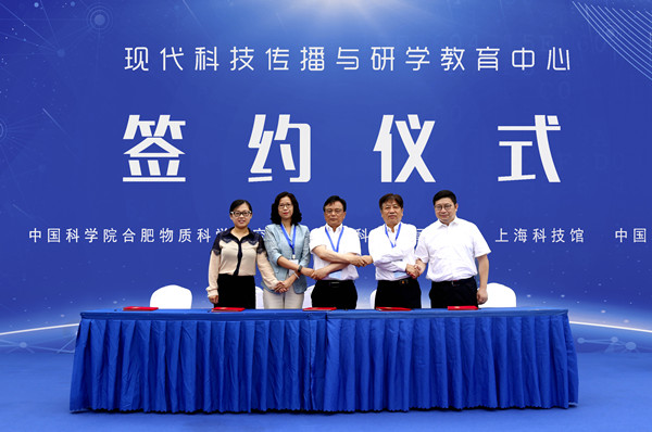 6月19日上午,由中国科协科技传播中心、中国科技新闻学会、上海科技馆、科普研学联盟、中国科学院合肥物质科学研究院五方共同建设的现代科技传播与研学教育中心正式成立,在合肥科学岛签订了五方共建合作协议。