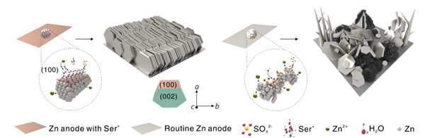 该研究通过吸附丝氨酸离子对锌离子在(100)表面迁移行为的调控,为分子水平上实现锌阳极优势织构提供了一种有前景的策略,并有望应用于其他稳定性和可逆性差的金属阳极。