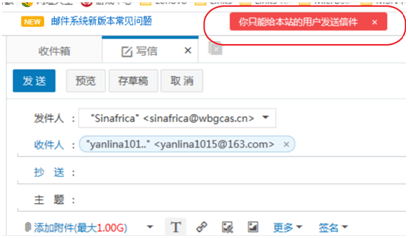 3、发邮件的时候,提示“你只能给本站的用户发送信件”
