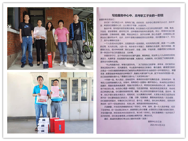 十年磨一剑,一朝试锋芒。随着2021年中高考临近,为使服务中心职工子女能以良好心态、满满信心,轻松状态迎接人生一次重大考验。6月4日,服务中心分工会组织开展了参加中高考职工子女“夏送清凉、助力高考”慰问活动。
