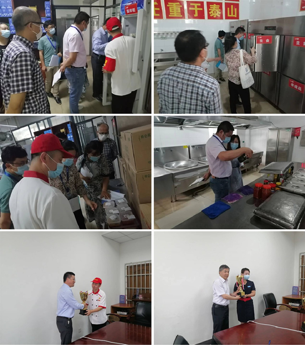 随后,检查人员围绕检查中发现的问题及收集来的阶段性意见召开了总结交流会。从结果看,各食堂安全卫生状况整体向好,为职工、学生提供了便捷的送餐服务和丰富多样的就餐体验,但也存在着部分食堂设施设备陈旧、少量餐具清洗不彻底、菜价标识不清等问题。会议要求各食堂落实安全卫生主体责任,对存在的问题逐一整改并及时做好整改反馈,切实保障职工、学生饮食安全。会议最后,邵风雷和李平分别为获得“先进食堂”荣誉称号的新职工餐厅一楼蜀王优芙得和李府食堂颁发了荣誉奖杯。