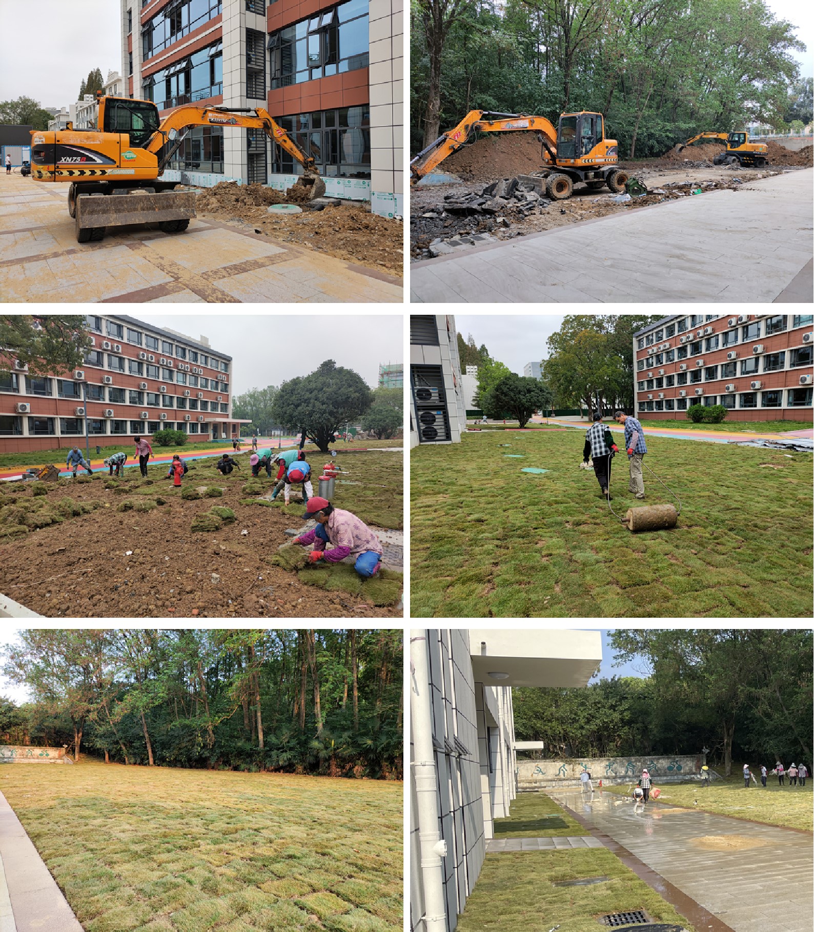 8月24日,附属中学校区建设完工。根据中心紧急部署,绿化管理部需在8月29日之前完成对新建教学楼周边的绿化美化,以保证学校的教学秩序不受施工影响。