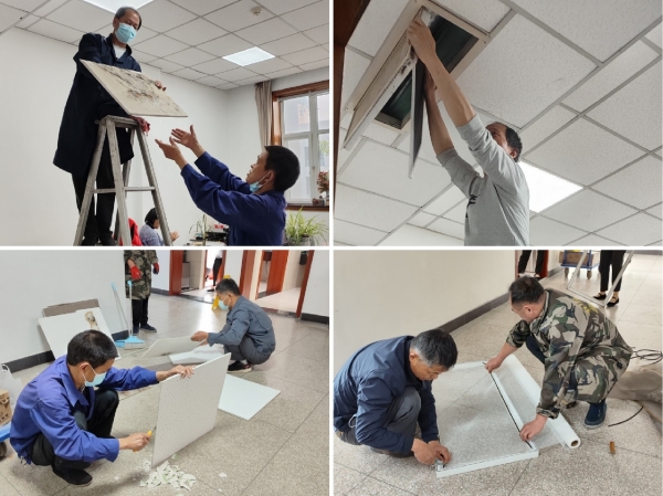四天里,累计清洗空调过滤网147扇,更换窗纱70扇、矿棉板吊顶45块。