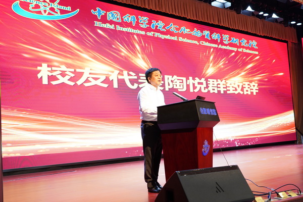 合肥研究院81级校友、欧普康视科技股份有限公司创始人陶悦群作为校友代表发言。陶悦群与毕业生们分享了在科学岛学习科研的点滴、讲述了归国创业的经过,他鼓励同学们做自己感兴趣的事,珍惜母校给予的宝贵精神食粮,不断开拓进取,服务祖国和人民,实现人生价值。