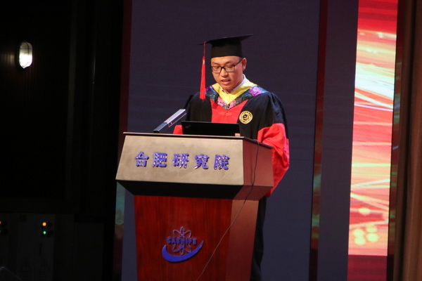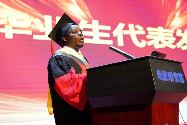 博士生侯吉磊、硕士生邵甲第和留学生Isaac Kwasi Baidoo作为毕业生代表依次发言,对母校、师长一直以来的支持表示感谢。他们结合自己在科学岛生活、学习、科研和学生工作的成长经历,分享了自己的思考和感悟,表达了对母校的留恋和对老师们悉心栽培的感恩之情。