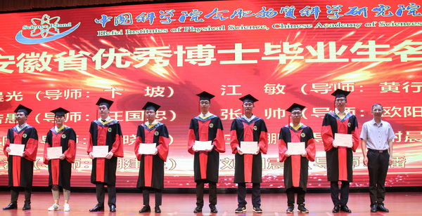 合肥研究院副院长程艳宣读了安徽省优秀硕士毕业生名单,党委副书记兼纪委书记邹士平宣读了安徽省优秀博士毕业生名单,副院长王俊峰宣读了中国科学技术大学初评通过2020年中科院院长奖学金名单,为优秀毕业生颁奖并合影留念。