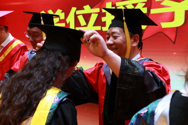 典礼上,领导老师为全体毕业生拨穗正冠,授予学位,并与每一位毕业生合影留念,共享这荣耀与难忘时刻。毕业生们向领导、老师和家长献上鲜花,表达对师长的谢意和不舍。