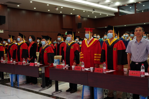 7月18日上午,中科院合肥研究院在机关食堂三楼报告大厅隆重举行2020届研究生毕业典礼暨学位授予仪式。合肥研究院院长刘建国、党委书记黄晨光、党委副书记兼纪委书记邹士平、合肥研究院副院长宋云涛、合肥研究院副院长王俊峰、合肥研究院副院长程艳,中科大研究生院副院长兼校学位办主任姚华建,校友代表陶悦群,各研究单元领导,研究生导师代表,毕业生及亲友等出席典礼。研究生处处长李贵明主持典礼。