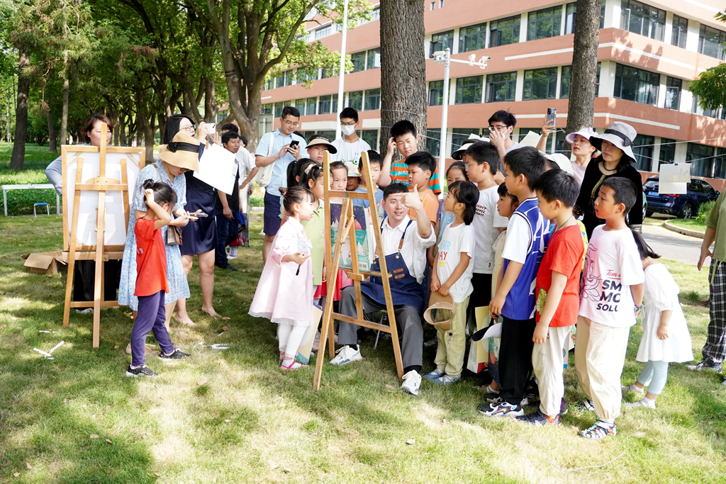 28日上午,科学岛“少年科学营”火热开营,热爱绘画的21位营员和艺术家相约科学岛,以画笔描绘绿荫碧水掩映的科学岛。在艺术家的指导下,小营员们妙笔生花,把自己的想象和眼前的美景融合在一起,留在了自己的画作中。