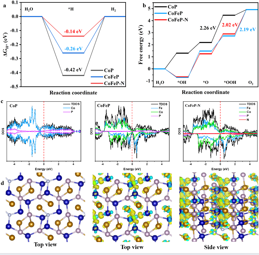 理论计算阐述CoFeP-N纳米线高效电催化水分解机理