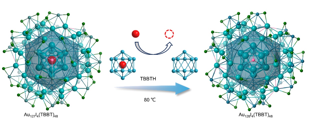图2.Au127和Au126纳米团簇的内核结构和转化条件。