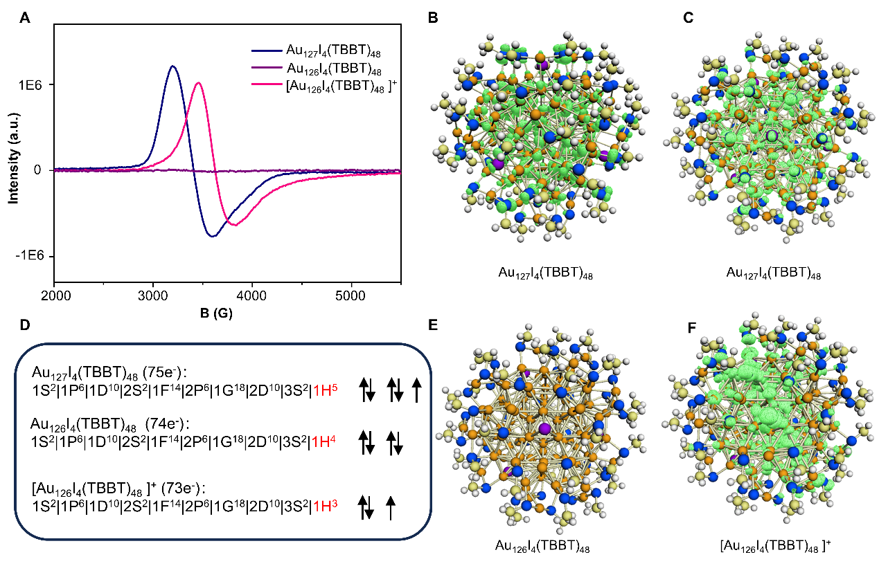 图3. Au127、Au126和[Au126]+的磁性检测和自旋分布。