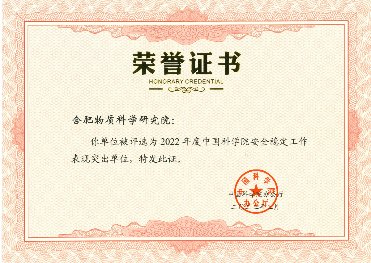 3月22日上午,中科院2023年度安全工作会议在中科院上海分院召开,会议宣布了2022年度中科院安全稳定工作表现突出单位名单,合肥物质院荣获表彰。