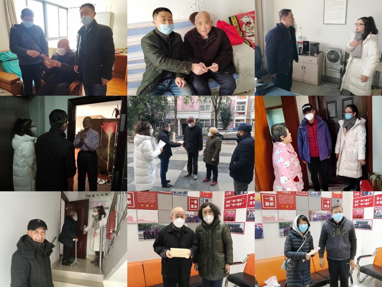 春节前夕,在离退休党委的统一安排下,各党支部支委班子、离退休服务部工作人员分别看望了在肥全体离休干部和部分生病、行动不便的老党员、困难党员、老职工和遗属,送上慰问品或慰问金,并通过上海党支部向在沪离退休职工转达了党组织的关怀慰问。