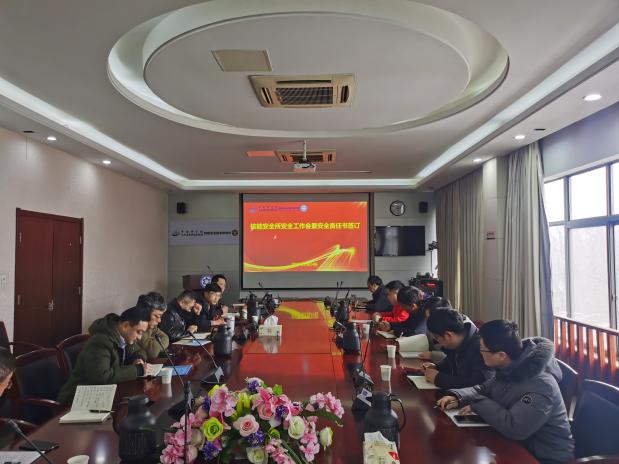 张艳辉作了《危险源管理业务交流》专题报告,全面介绍了物质院安全管理工作要点,重点讲解了实验室安全责任落实、危险源管理、信息化系统建设、标杆实验室创建等方面的内容。会上,所党委副书记、副所长王锐代表研究所与各部门负责人、重要平台安全负责人签订了2023年度安全工作责任书。