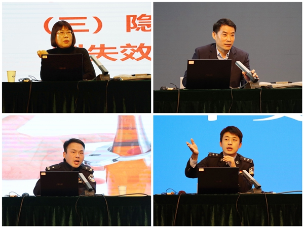 安徽省应急管理厅宣传教育中心副主任宣晓燕、合肥工业大学实验室安全处处长钟华勇、合肥市公安局政治部新闻中心三级警长周力、合肥刑警支队五大队副大队长杨础作报告