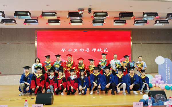 典礼最后,毕业生们向各位导师敬献鲜花并合影留念。