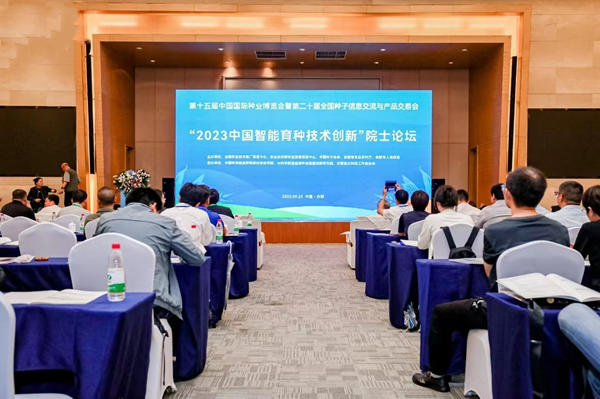 9月23日下午,由中国科学院合肥物质院等单位联合承办的“2023中国智能育种技术创新”院士论坛在合肥召开。该论坛是第十五届中国国际种业博览会暨第二十届全国种子信息交流与产品交易会的主要活动内容之一,4名农业领域院士以及百余位专家学者参加论坛,围绕智能育种技术开展学术交流与研讨。