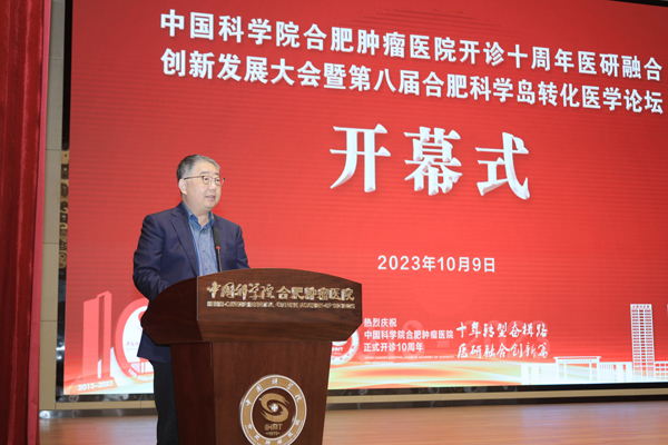 10月9日,中国科学院合肥肿瘤医院开诊十周年医研融合创新发展大会暨第八届合肥科学岛转化医学论坛在肿瘤医院新院区举办,近百位院士专家齐聚合肥肿瘤医院,共话医研融合新发展。