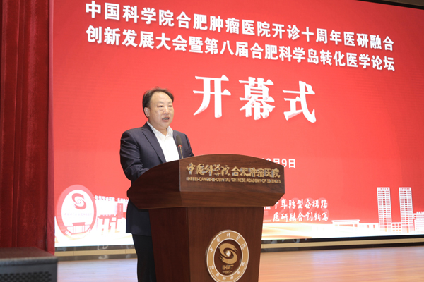 刘建国院长在讲话中表示,合肥物质院高度重视健康科技发展,在一些领域有着长期深入系统的研究和积累。今天,恰逢肿瘤医院开诊10周年,一座现代化的新院区已初具规模,希望健康所和肿瘤医院进一步增强使命感、责任感、紧迫感,准确把握“国家队”“国家人”内涵,强化“国家事”、“国家责”的使命担当,认真落实好合肥物质院健康领域科技布局相关要求,深入推进临床与科研深度融合,推动健康所和肿瘤医院一体化高质量发展,开创具有科学岛特色的医研融合新局面,为健康中国建设贡献科学岛力量。