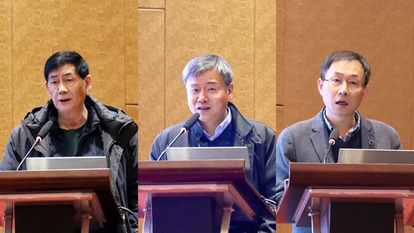 合肥物质院国际合作处处长董少华、科技促进发展处处长邓国庆、人事处副处长王辉分别从高水平国际合作、新时期院地合作及成果转化、人才政策等方面为大家进行了解读。安光所副所长朱文越分享了开展高技术科研的心得体会,副所长赵南京向大家介绍了安光所基础研究工作概况。