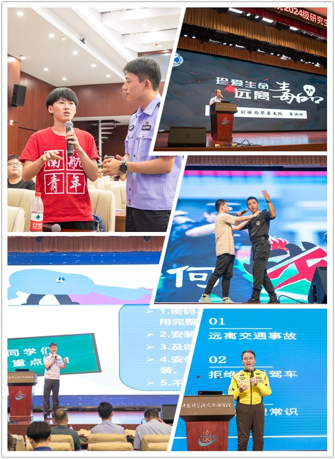 入学教育环节分别邀请到合肥警方“平安V警团”,合肥物质院监审处处长翁宁泉、档案馆主任申飞、安全保密处处长谭立青、科技促进发展处副研究员文辉、文献情报与期刊中心副研究馆员张甫,中国科大心理健康教育与咨询中心主任沈克祥,围绕科研诚信、论文关联数据、安全保密、知识产权、高效检索、心理健康等方面为新生开展针对性的宣讲教育。