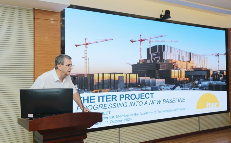 Alain BECOULET教授在访问期间,为全所职工学生作了题为《国际热核聚变实验反应堆(ITER)项目的最新进展》的专题学术报告,吸引了百余位职工和学生到场聆听。报告详细介绍了ITER项目的目前进展以及未来面临的主要挑战和研究方向。与会者积极提问,就ITER项目的科学目标、技术难题、以及未来发展方向等议题展开了热烈的讨论。