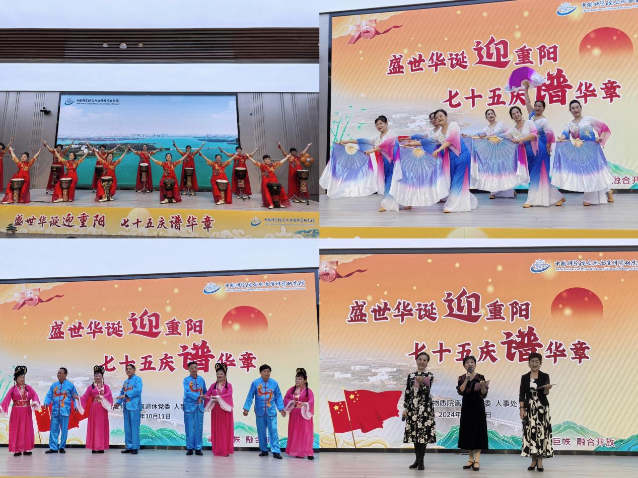 庆生活动上,合肥物质院老年大学学员登台表演了手鼓舞、黄梅戏、诗朗诵等节目,科学岛老年“红枫艺术团”以录播形式合唱了为中国科学院“抢占科技制高点、科技报国迎华诞”歌咏大赛报送曲目《天路》。老同志们精彩的艺术表演,既展现了新时代合肥物质院离退休职工的优秀精神风貌,又为庆生活动烘托出喜庆热烈、生动活泼的场面。