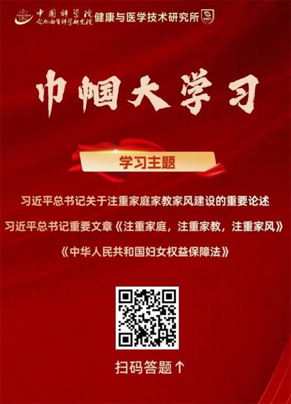 围绕强化家庭家教家风建设,健康所精心策划了为期一周的“巾帼大学习”——家庭家教家风建设知识学习。组织女职工深入学习习近平总书记关于注重家庭家教家风建设的重要论述和新修订的《中华人民共和国妇女权益保障法》,同时以线上答题的形式检验学习成果,测试内容既考察了对家庭家风家教重要性的认识与理解,也帮助大家进一步了解妇女同志享有的权益,积极营造关心关爱女性的良好氛围,充分发挥女性在推进新时代家庭家教家风建设中的重要作用。为期一周的活动期间,累计参加答题150余人次。
