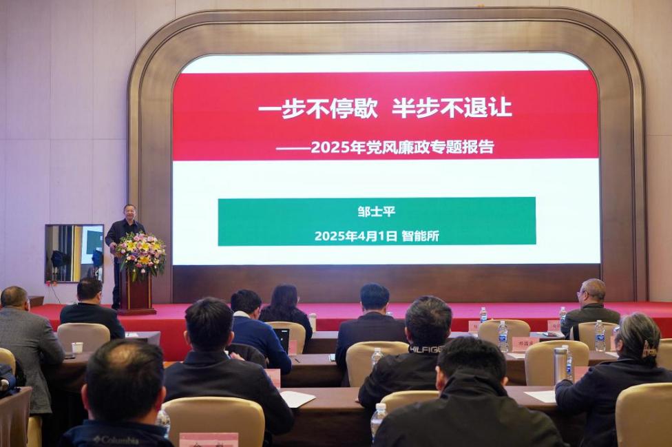 邹士平作了题为《一步不停歇 半步不退让》的党风廉政专题报告,他从习近平总书记全面从严治党重要思想出发,深入解读了中央纪委2025年重点工作。报告还介绍了合肥物质院针对科研项目管理、兼职兼薪、考勤纪律等方面开展的工作部署和工作进展。