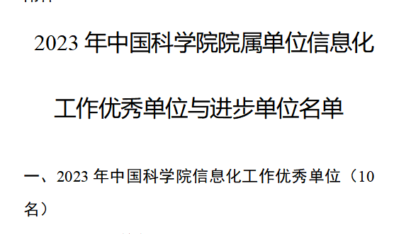 近日,中国科学院科技基础能力局下发《关于公布“中国科学院2023年信息化工作优秀单位”和“中国科学院2023年信息化工作进步单位”名单的通知》,合肥物质院在118家参评单位中,综合排名第四,连续第4年入选“中国科学院2023年信息化...