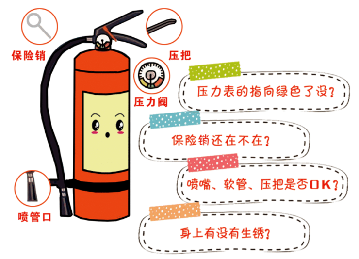 常用的灭火器有干粉灭火器、二氧化碳灭火器和水基灭火器。干粉灭火器带压力表、二氧化碳灭火器筒体修长,不带压力表,水基型灭火器一般为绿色筒体。