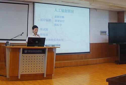 核辐射安全与防护组钟国强副研究员受邀作了题为“电离辐射安全与防护基础”的报告。钟国强对电