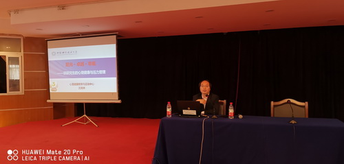 沈克祥为同学们带来的报告题目是《阳光·卓越·幸福--谈研究生的心理健康与压力管理》。报告用易懂