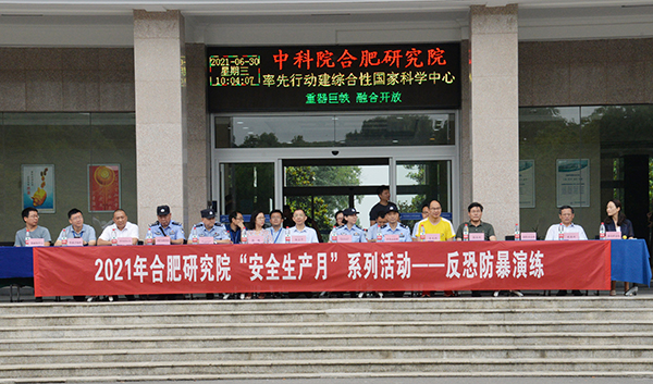 根据合肥研究院2021年“安全生产月”活动方案,为进一步提高暴恐事件的应对处置能力,6月30日上午,合肥研究院在二号楼北广场举办反恐防暴应急演练。合肥研究院党委副书记兼纪委书记邹士平、副院长程艳、各科研单元分管安全所领导以及合肥市公安局保安管理处、蜀山公安分局治安大队、井岗派出所、科学岛警务站、安信保安公司有关领导现场观摩了反恐防暴应急演练活动。