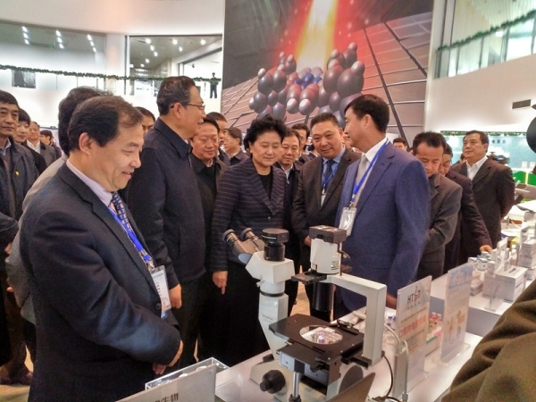 3月25日,中共中央政治局委员、国务院副总理刘延东在省委书记李锦斌的陪同下,考察量子科学实验卫星及量子通信京沪干线合肥总控中心。 本报记者 徐国康 摄