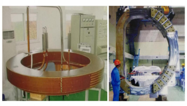 EAST的极向场超导线圈(左侧)和D型纵场超导线圈