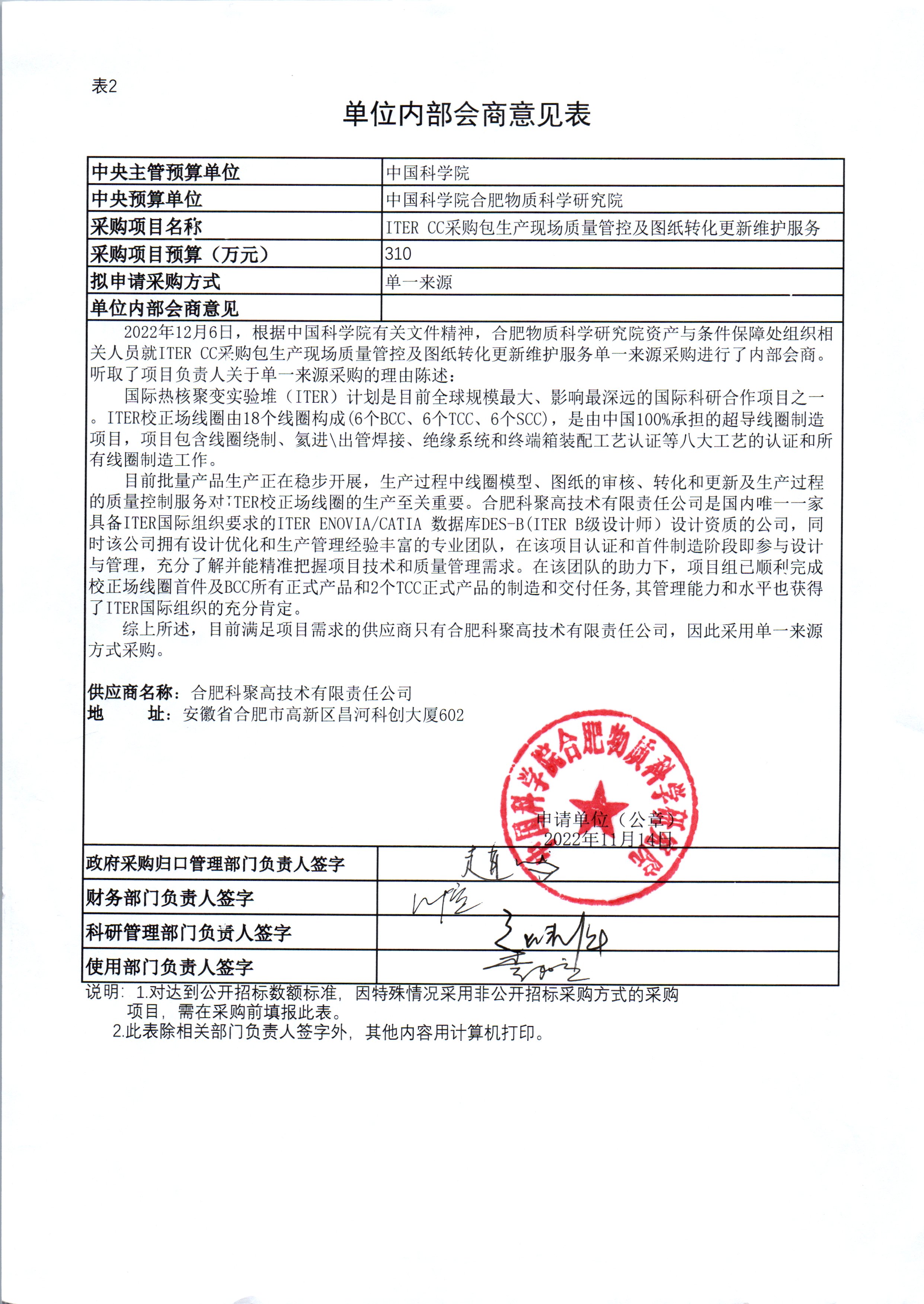 [公示已结束]关于《ITER CC采购包生产现场质量管控及图纸转化更新维护服务》采用单一来源采购方式的单位内部会商意见的公示(2022.12.16-2022.12.23)