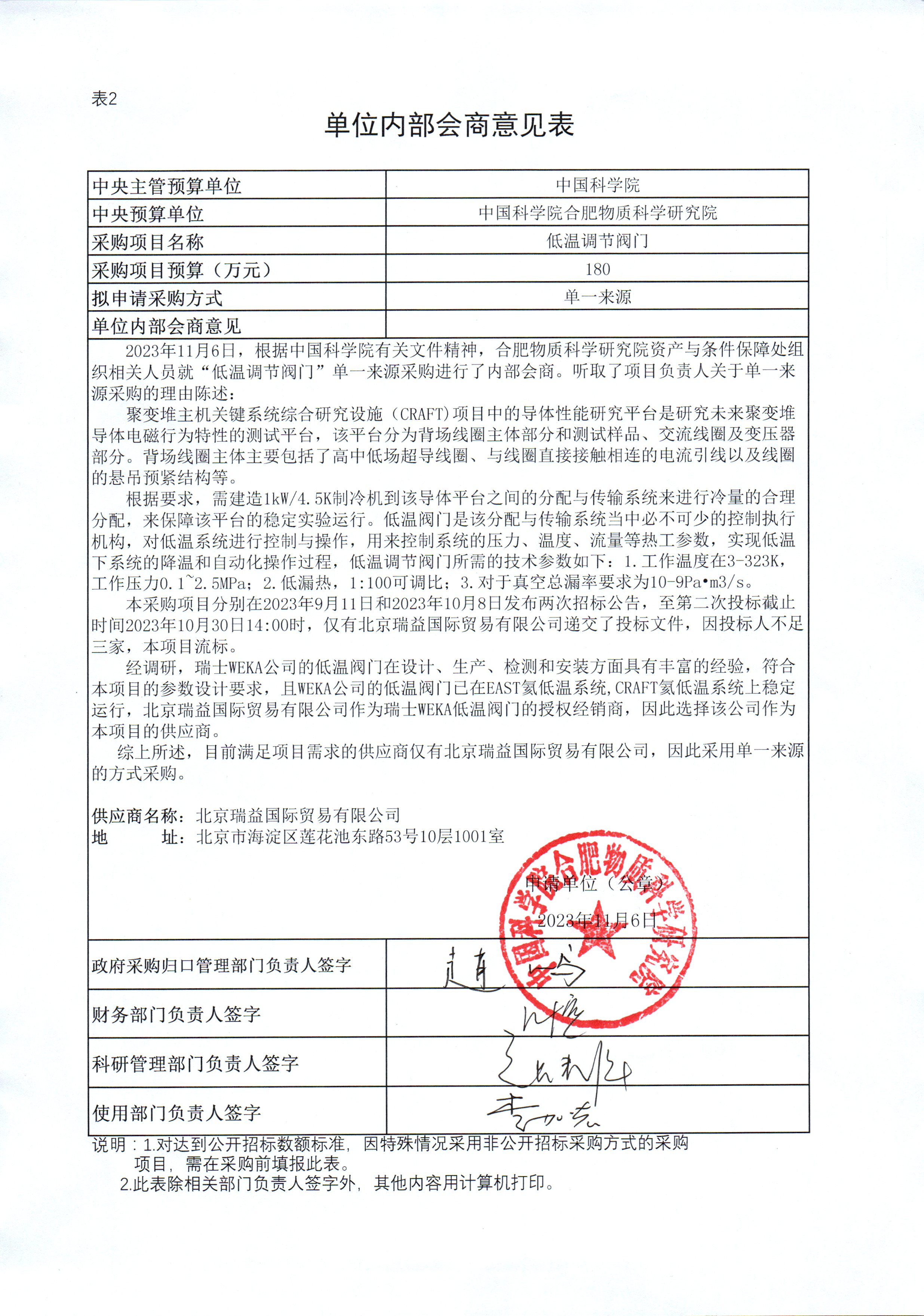 [公示已结束]关于《低温调节阀门》采用单一来源采购方式的单位内部会商意见的公示(2023.11.13-2023.11.20)