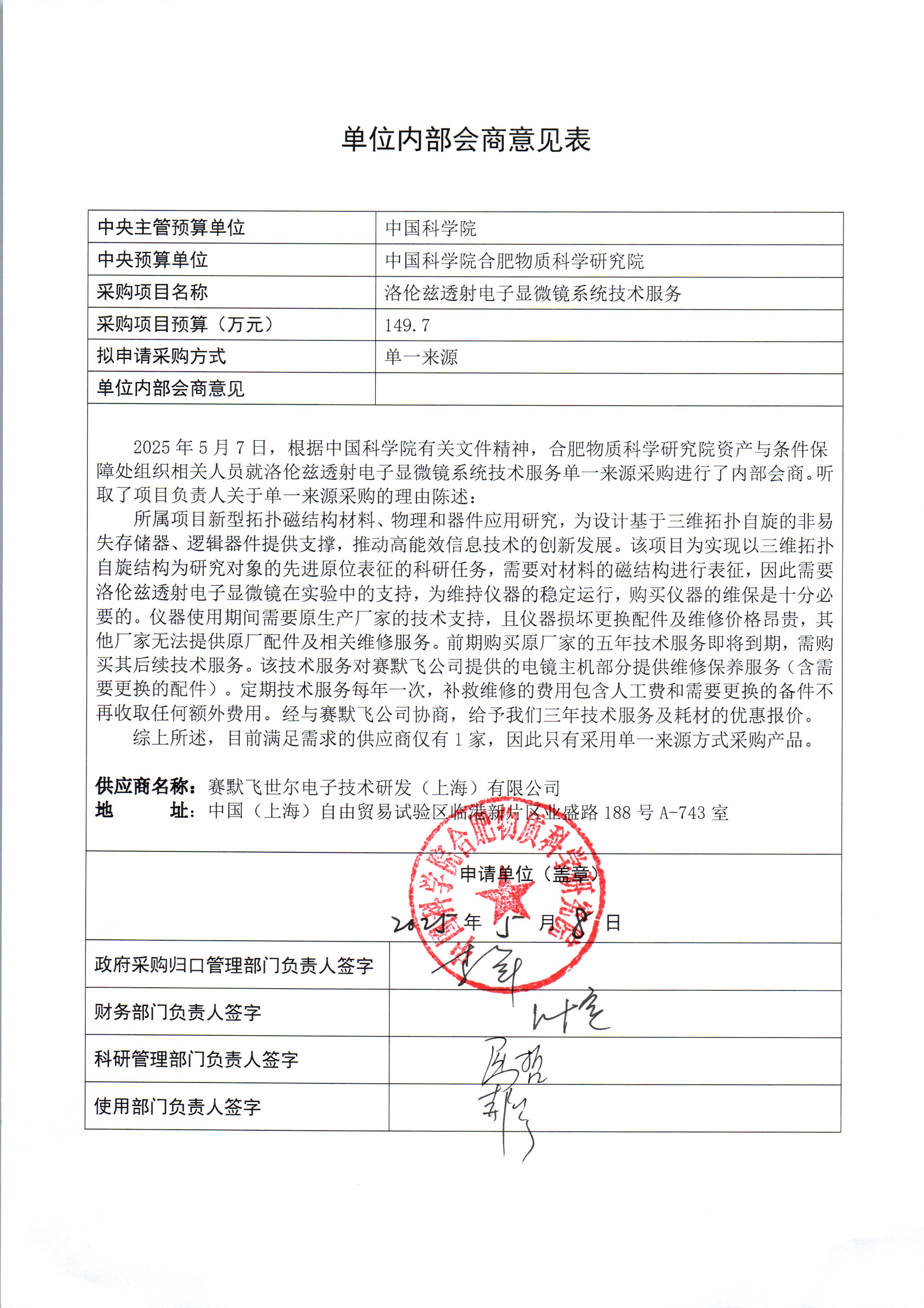 [公示已结束]关于《洛伦兹透射电子显微镜系统技术服务》采用单一来源采购方式的单位内部会商意见的公示(2025.5.9-2025.5.16)