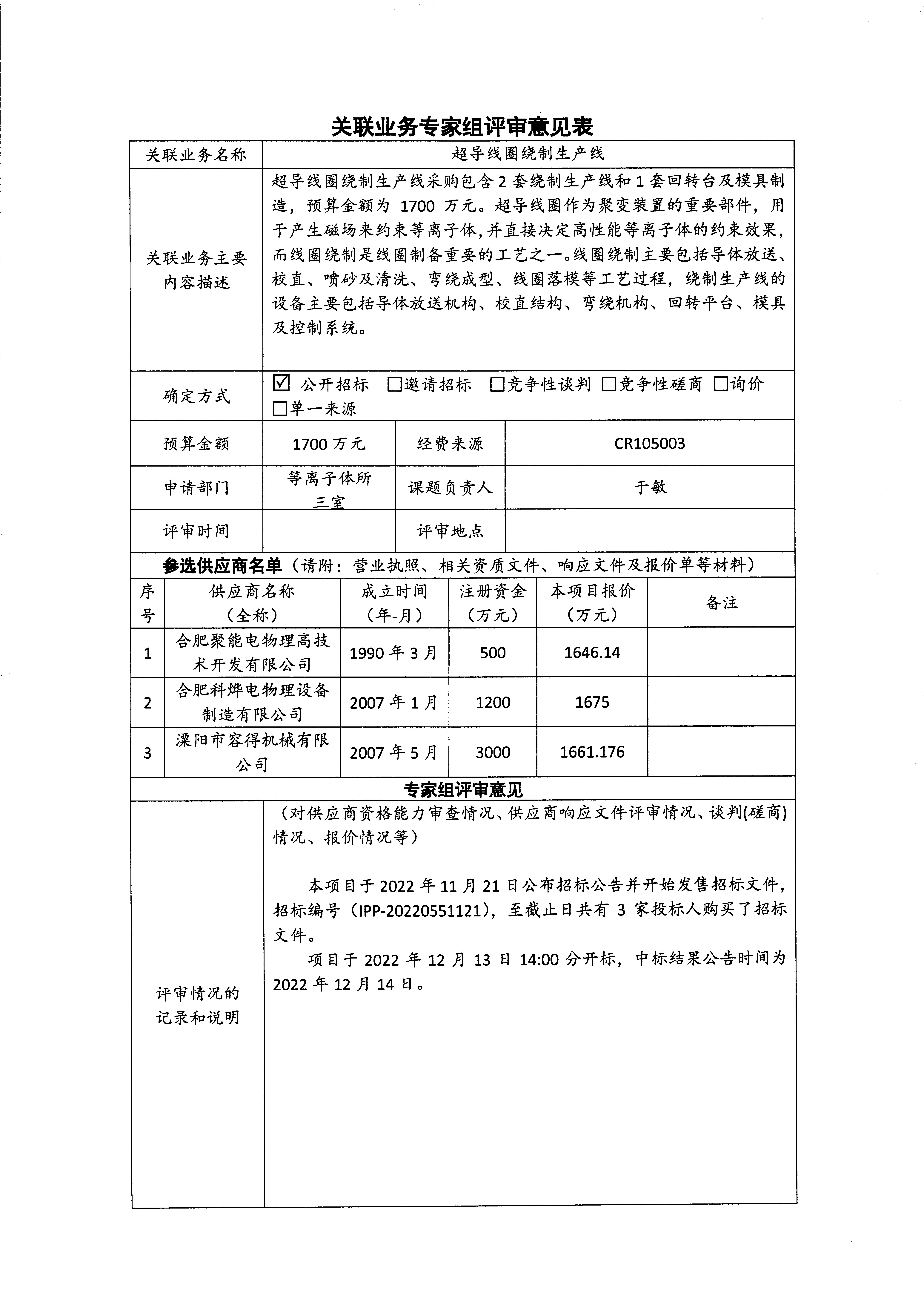 [公示已结束]《超导线圈绕制生产线》关联业务公示(2022.12.19-2022.12.23)