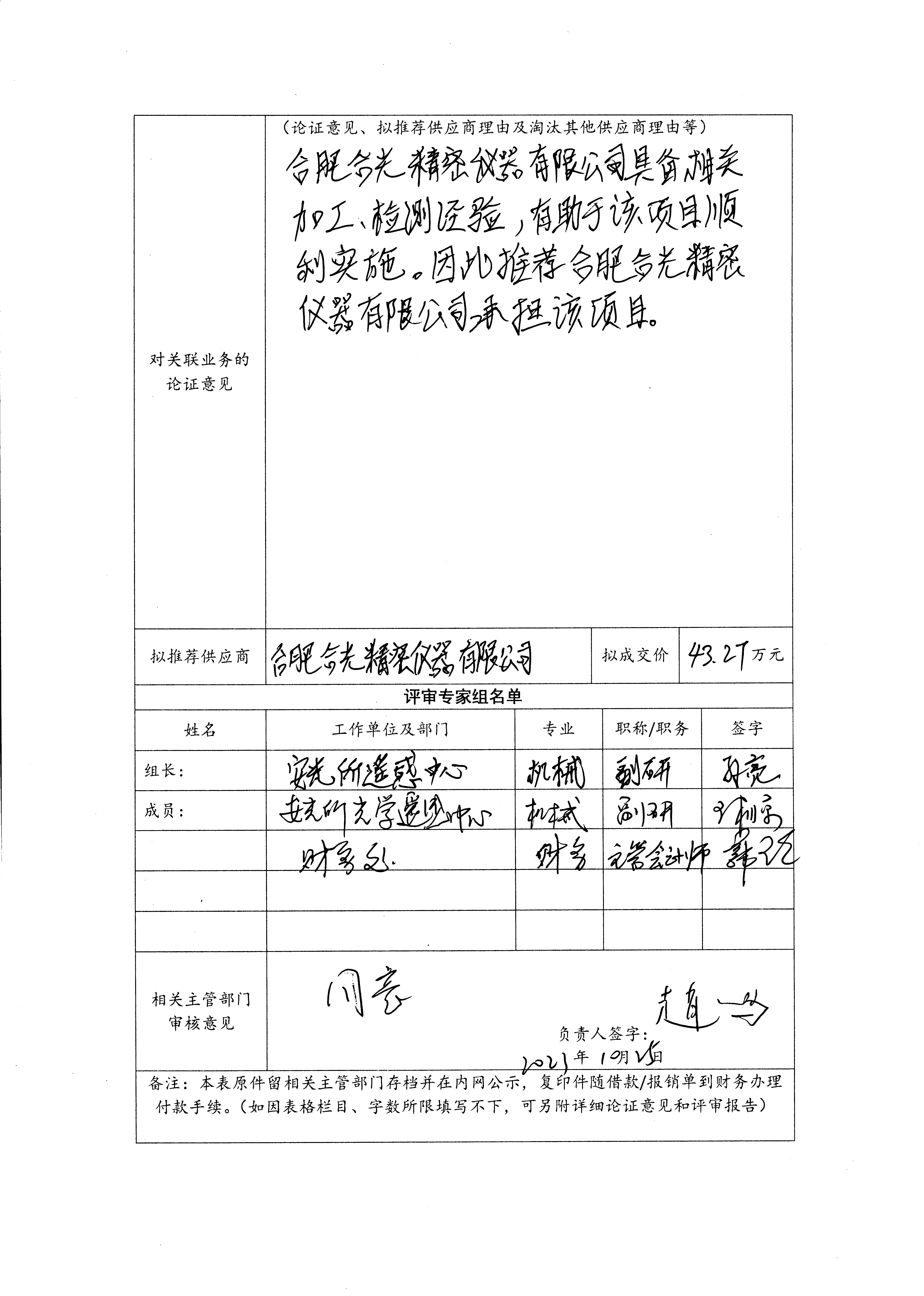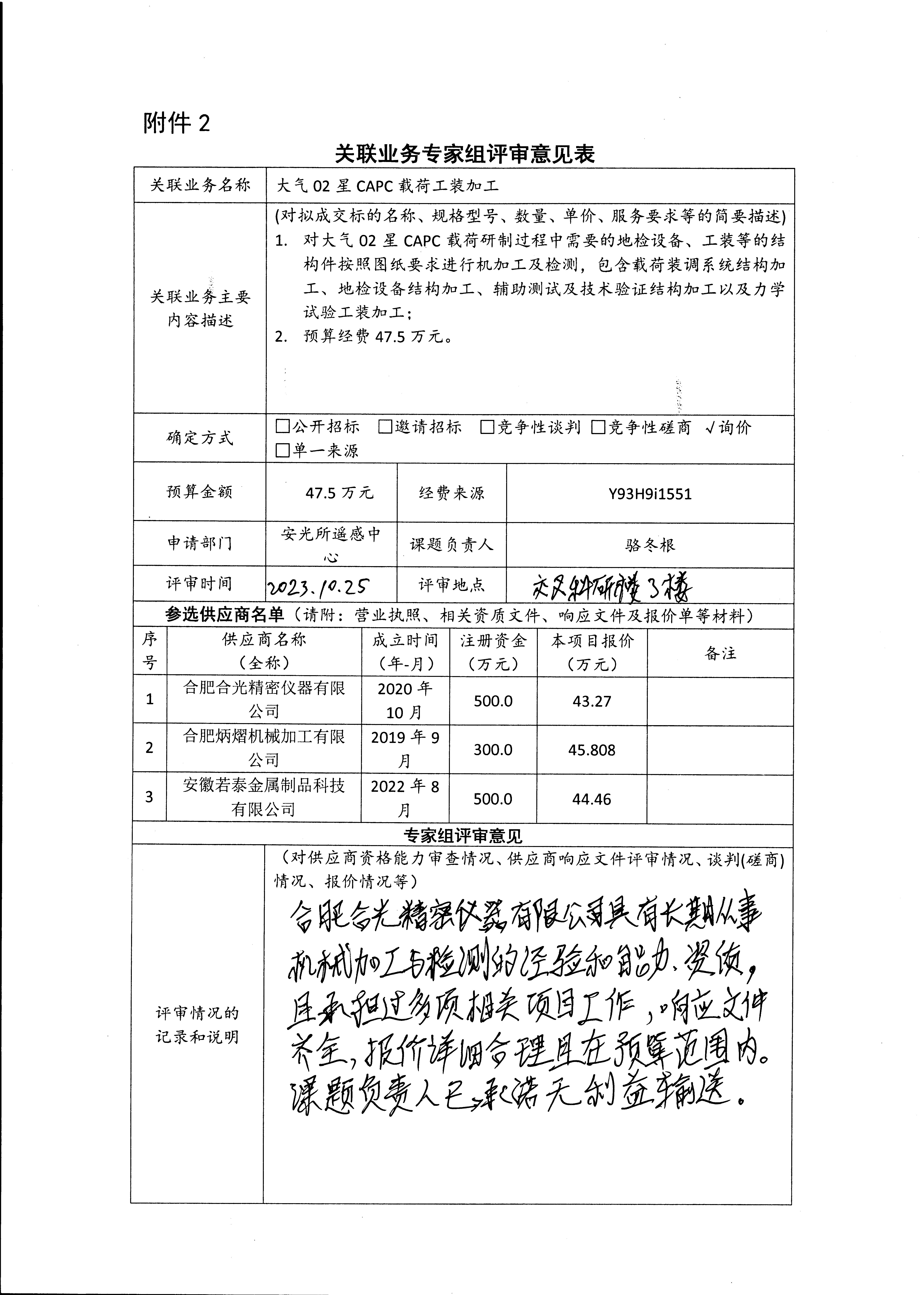[公示已结束]中国科学院合肥物质科学研究院关于委托合肥合光精密仪器有限公司进行大气02星CAPC载荷工装加工的关联业务公示