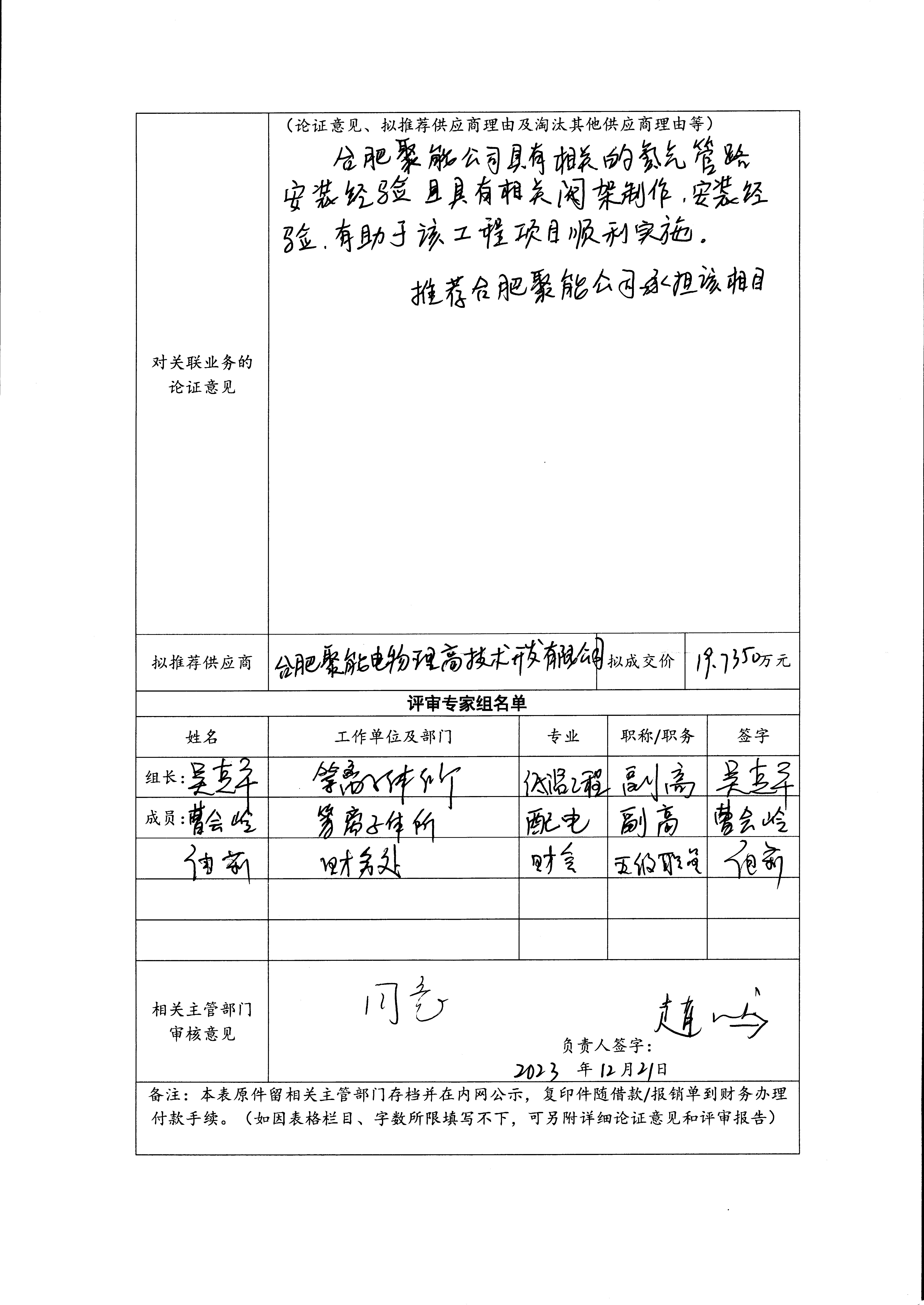 [公示已结束]中国科学院合肥物质科学研究院关于委托合肥聚能电物理高技术开发有限公司进行阀架制作安装及管路连接的关联业务公示